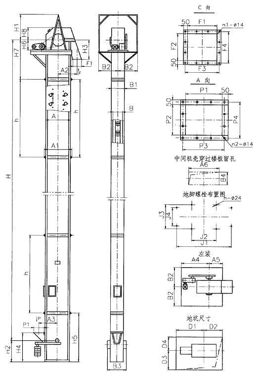 NE系列板鏈斗式提升機主要結(jié)構(gòu):